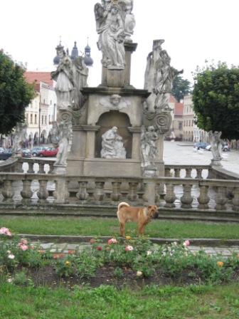 Tak se nám konečně ochladilo a do našeho plyšáka opět vstoupilo minimálně deset čertíků. Včera jsme byli na výletě v Telči, měla probíhat akce "Balóny nad Telčí", ale nejspíš kvůli dešti balóny nelétaly. Tak jsme si to namířili do zámeckého parku, že tam se klouček vyběhá, ale ten byl zase zavřený kvůli dnešnímu koncertu Jarka Nohavici - Telč prostě žije :-) . Takže jsme jen prošli náměstí, Céďa očůral domy zapsané v Unescu, v loubí jsme dali kávu (Céďa mlíčko co dávají ke kávě) a pak jsme se davy turistů v gumácích a pláštěnkách prodrali zpět k autu na parkoviště.