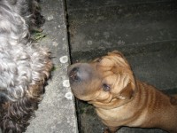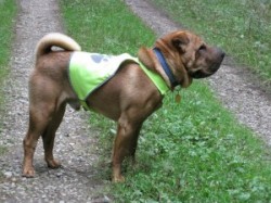 Ale neošulili, je to šarpík jak má být!!! Minulý týden jsme nemocné staré paní sousedce venčili psíka. Cedrýsek z toho byl zpočátku vyjukaný, ale když zjistil, že soused musí jít na vodítku (jinak by nám fouk) a Céďa si lítá jen tak navolno, odpustil mi to :-). Vždycky ho předběhl a dělal na něj kiš kiš, Tebe vodítko už dál nepustí. Stará paní si Cedrýska moc oblíbila a při odchodu i příchodu oba pejsky dopovala piškotky..... no, tak teď má ohozenou zeď v celé chodbě - vypadá to jak u nás doma!