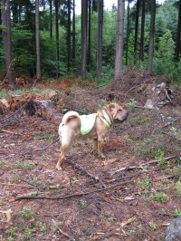 Víkend jsme kupodivu přežili ve zdraví - v nedělijsme byli v lese, že se klouček vydovádí a zase bude klid. No nebyl, v arzenálu má ještě dost lotrovin a nějaké to lesní dobrodružství na tom nemůže nic změnit. Ale v lese se choval naprosto vzorně, hlídal si nás - odbíhal jen tak daleko, aby na nás viděl, vštšinou na první zavolání přiběhl - no co víc si přát :-). Ve městě nám kloučka ale někdo vyměnil, opět nás měl těžce na háku a pomalu přichází doba, kdy dostane na krk klíče a bude se chodit venčit sám - prostě nás nepotřebuje :-).