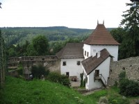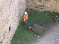 Dnes jsme si udělali výlet na hrad Landštejn. Můžou tam i pesani, tak jsme nezaváhali a trosky hradu prošli, aby Cedrýsek získal trochu ánung o místní historii. Na věž sice se mnou nešel, ale tak jsem ho z té výšky alespoň vyblejskla, jak tam s páníkem vzorně čekají, až se jim alfa člen smčeky vrátí :-).